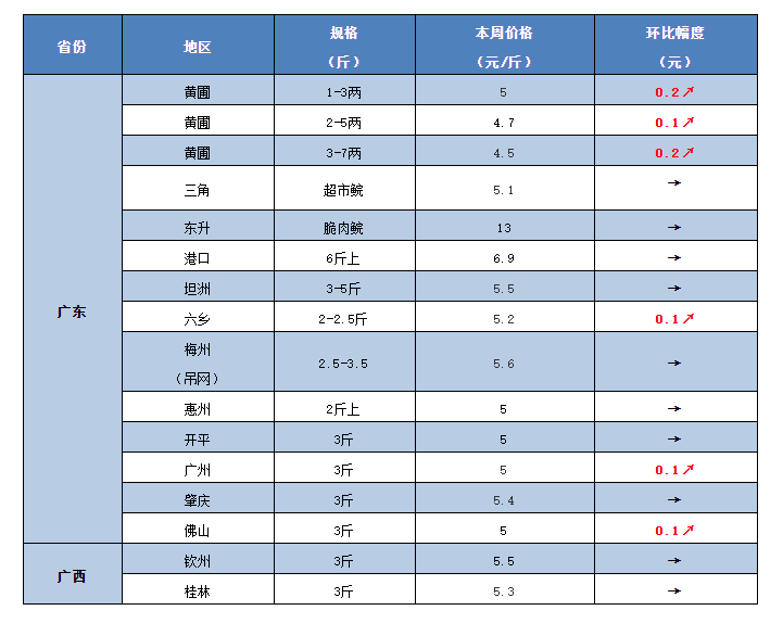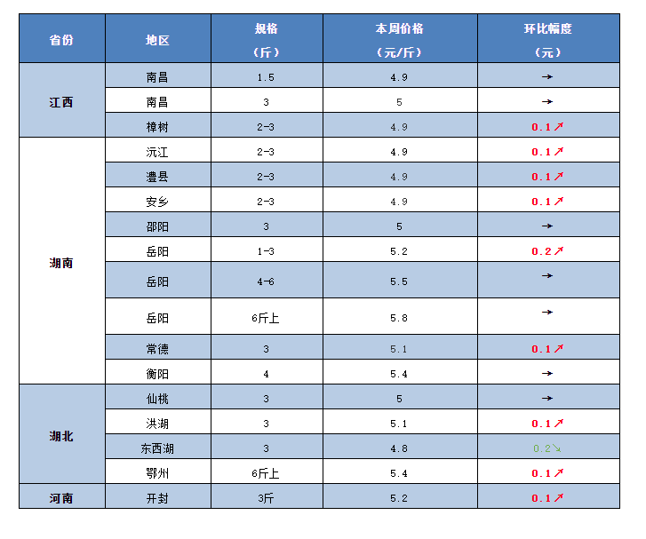 | 中國水產頻道獨家報道, 草魚全線漲價!湖北、江西大草魚突破6元/斤、福建3斤草魚賣到5.7元/斤、四川最高上漲0.5元/斤,廣東草魚苗再次突破5元大關 文/水產前沿鄭鵬飛 一周要聞 多地下架、禁售進口凍品,違者嚴懲!豬價還會漲? 作為全國最大的凍品物流中轉基地—鄭州物流港冷庫,自12月12日7點起,鄭州全區冷庫關閉冷庫,所有貨物暫時禁止出入庫,開市時間另行通知! 由于近期冷凍食品核酸陽性事件頻發,除了鄭州物流港冷庫外,多地要求關閉冷庫,停售進口冷凍食品,目前還有陜西西安、湖北襄陽、安徽合肥、北京、天津多地冷庫關閉,所有貨物暫時禁止出入庫或就地封存,銷售場所、冷庫全面徹底消殺......據農牧前沿消息,今天豬肉幾近全線上漲。 全國草魚價格全線反彈上漲 冷空氣南下,消費量上升,捕魚難度加大,全國草魚行情全線飄紅。目前華南、華東、西南地區草魚行情有回暖勢頭,華中、華北以及東北地區呈現持續上漲勢頭。 據了解,目前北方的魚塘幾乎全面封凍,魚車普遍南下抓魚。目前武漢白沙洲市場每天的四大家魚交易量已超過300萬斤。尤其最近幾天長江沿線城市也開始大范圍降雪,未來行情還是有望持續走高。 目前,廣東中山1-3兩的草魚苗再次突破5元/斤,3斤的草魚塘頭價賣到5.4元/斤。湖南常德3斤的草魚最新塘頭價賣到5.1元/斤,上漲0.2元/斤,長沙草魚苗開始很緊張了。湖北洪湖3斤的草魚最新塘頭價賣5.1-5.2元/斤;隨州7斤的草魚塘頭價已賣到6元/斤以上。江西新余地區3-4斤的草魚最新塘頭價賣5.1元/斤,6斤的大草魚塘頭價也已突破6元大關;福建南平3斤的草魚賣到5.5元/斤,上漲0.2元/斤,閩江地區已經賣到5.7元/斤。目前,江蘇淮安地區3-5斤的草魚塘頭價在5.2-5.3元/斤。河北唐山3斤的草魚最新塘頭價已經賣到5.6元/斤,天津寶坻最高賣到5.8元/斤,上漲0.3元/斤。四川德陽地區3斤的草魚塘頭賣到6元/斤,上漲了0.5元/斤;成都三岔湖最新報價也已經賣到5.7元/斤,上漲0.2元/斤。 四川德陽3斤草魚突破6元/斤,暴漲0.5元/斤 天津地區3斤草魚再漲0.3元/斤,塘頭價賣到5.8元/斤 湖南長沙草魚苗吃緊,養殖戶表示明年草魚行情會更好 一周行情 華南地區 本周華南地區的草魚整體行情也是穩中有升,其中珠三角地區草魚種有0.1-0.2元/斤的上漲,成魚價格整體上保持穩定。 中山:隨著氣溫的降低,加上苗種價格相對低迷,近期養殖戶賣苗積極性不高,近期草魚苗種整體行情有所回暖。據了解,目前中山黃圃1-3兩的草魚苗再次突破5元/斤,其他規格也都有0.1-0.2元/斤的上漲。從流通商了解到,目前中山地區3斤的草魚最新塘頭價賣到5.4元/斤,相比之前也是開始有小幅上漲。 廣西:本周廣西地區雖然降溫非常明顯,局部甚至下去了雪,但是魚價行情暫時還是沒有太大變化。據了解,目前武宣地區3斤的草魚塘頭賣5.5元/斤,桂林地區最新塘頭價也還是繼續維持在5.3元/斤左右。 華中地區 本周華東地區的草魚行情整體上呈現上升趨勢,多地塘頭價再次出現上漲。尤其近期長江沿線城市很多有已經開始下雪,接下來出魚的難度會進一步加大,未來行情還是有望持續走高。 湖南:本周湖南的草魚行情也是再次出現小幅上漲。從養殖戶了解到,目前常德地區3斤的草魚最新塘頭價賣到5.1元/斤,較之前上漲0.2元/斤。最近幾天長沙地區的草魚行情不是很好,成魚價格暫時沒有什么好轉。不過養殖戶表示,現在當地的草魚苗開始很緊張了,預計明年的草魚行情會比今年要好。 湖北:本周湖北的草魚塘頭價整體上呈現回暖勢頭。冷空氣南下,北方魚塘封凍使得魚車開始后南下,目前武漢白沙洲市場每天的四大家魚交易量已經超過了300萬斤,而且有部分水車不進市場直接到塘口裝魚,而且水車數量還在不斷增加。目前洪湖地區草魚塘頭價相比上周繼續有小幅上漲,3斤的草魚最新塘頭價賣5.1-5.2元/斤,目前出魚量不大。據了解,最近隨州地區養殖戶大多開始賣大草魚,目前7-9斤的草魚最新塘頭價基本都在6元/斤以上。近期賣魚的增多導致市場上的魚價行情受到影響,了解到最近兩天武漢的草魚行情出現回落,下滑幅度在0.2-0.3元/斤。由于大行情普遍在回暖,這次的下滑應該是暫時的。 江西:本周江西地區的草魚行情也是繼續有上漲勢頭。從養殖戶了解到,目前江西新余地區3-4斤的草魚最新塘頭價賣5.1元/斤,5斤的賣5.4元/斤,6斤的大草魚塘頭價基本在6元/斤以上;南昌地區3斤的草魚最新塘頭價也基本在4.8-5元/斤之間。 華東地區 本周華東地區的草魚行情也是終于開始有點好轉了,尤其福建地區的草魚塘頭價漲勢明顯。 福建:據養殖戶介紹,最近幾天閩江地區草魚行情繼續保持上漲勢頭,目前3斤的草魚最新塘頭價在5.7元/斤,繼續有0.1元/斤的小幅上漲;南平地區3斤的草魚最新塘頭價賣到5.5元/斤,相比上周上漲了0.2元/斤。 江蘇:據了解,最近江蘇草魚行情整體上還是不是太理想。養殖戶表示,雖然塘頭價格起來了但是市場上走不動。目前,淮安地區3-5斤的草魚塘頭價在5.2-5.3元/斤,到市場也就賣5.4-5.5元/斤,小草魚的行情依然很低迷。目前徐州部分地區3斤的鯉魚塘頭價還是只有4元/斤,草魚最低賣到4.5元/斤。 浙江:最近浙江地區的草魚行情還是沒有太大變化。據養殖戶介紹,目前衢州地區3斤的草魚最新塘頭價繼續保持在5元/斤左右,基本維持上周水平。 其他地區 華北地區:隨著冷空氣的不斷南下,目前華北地區的魚塘基本都