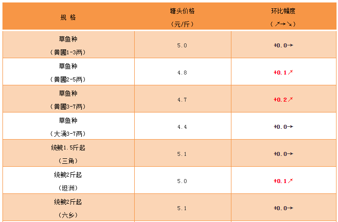 文/ 水產前沿 何鴻浩 中國水產頻道原創報道,草魚種:本周草魚種中的大規格價格微升,主要原因為當前行情較低迷,養戶普遍惜售,拉動價格上漲。 統鯇:本周價格略微上漲,1.5斤價格保持穩定,報價為5.0元/斤;2斤上規格上漲0.1元/斤,4.9-5.1元/斤;3斤上規格維持不變,報價為5.0元/斤。 大草魚:價格與上周持平,4斤上規格為6.1元/斤;5斤上規格為6.6元/斤。 脆肉鯇:本周脆肉鯇價格維持高位。今年天氣提前轉冷,市場需求依舊較大,市場供求較為平衡,但今年脆肉鯇養殖量較往年少,預計隨著天氣進一步轉涼,元旦后至春節前價格還有上漲可能。此外,當前天氣轉冷,魚塘出魚前需要注意改底消毒,預防池塘泛底、爛身死魚等問題。 |