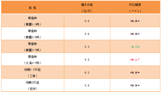 文/ 水產前沿 何鴻浩 中國水產頻道原創報道,草魚種:本周草魚種價格保持穩定,天氣轉好,投喂率增加,市場有序出魚,成交量較大,后市看好,建議養殖戶做好肥水改底工作,并適時上市。 統鯇:本周魚價穩定,處于較高位置,目前存塘較少,市場需求仍然較大,大草魚價格有一定下滑,統鯇市場需求受到抑制,預計春節前后價格依舊會相對穩定。 大草魚:受脆肉鯇行情下行影響,本周大草魚魚價繼續微跌,市場需求仍然較大,天氣回暖出魚增多,魚價輕微下跌,但明年脆肉鯇養殖量預計會有所增加,預計春節前后價格會有一定上漲。 脆肉鯇:本周脆肉鯇價格下行0.7元/斤,天氣回暖較多,市場需求下滑,加之今年疫情防控影響餐飲堂食,市場出現短暫供大于求,但今年存塘量不多,預計春節前價格會保持在現行高位。 |