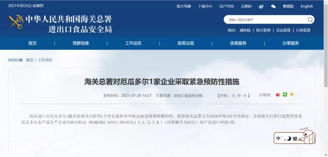 | 中國水產頻道報道, 王牌143工廠熔斷2周,厄瓜多爾前三大廠商接連受挫! 8月4日,海關總署進出口食品安全局發布通知,“因從進口自厄瓜多爾3批次凍南美白蝦的4個外包裝樣本中檢出新冠病毒核酸陽性,按照海關總署公告2020年第103號的規定,全國海關自即日起暫停接受厄瓜多爾水產品生產企業PROEXPO, PROCESADORA Y EXPORTADORA DE MARISCOS S.A.(注冊編號為678)的產品進口申報1周和EXPALSA, Exportadora de Alimentos S.A.(注冊編號為143)的產品進口申報2周。” EXPALSA(王牌)143是厄瓜多爾白蝦前三大工廠之一,進入國內凍品市場較早。其水凍蝦的市場占有率和桑塔白盒、歐瑪莎塊凍并駕齊驅。由于其本土化的成功,非常討喜的品牌名稱“王牌”,醒目的黃白相間的包裝,在下游經銷商客戶中,知名度很高。 值得注意的是,在此前7月29日,因同樣的原因,海關總署也暫停厄瓜多爾最大蝦企SANTA(桑塔)進口申報一周。(于8月5日起解禁。) 再加上此前歐瑪莎被累計熔斷9周,厄瓜多爾前三大白蝦廠商近期接連受挫。 實際上,厄瓜多爾白蝦對華出口業是一個高度集中的行業,前10大廠家幾乎占據了80%的中國市場份額,而前三大廠家則瓜分了55%的銷量。頭部廠家接連出事,對中國凍蝦市場將產生更深遠的影響。 不過海鮮指南也從厄瓜多爾水產商會了解到,“近期已經安排厄瓜多爾蝦業從業人員優先接種疫苗,同時也會尋求更高效的消毒方法來保證白蝦出口產品的安全。” 有業內人士則坦言,“三大工廠廠號被禁,短期內會有影響,但頭部的工廠都有多個備用的注冊號,會選擇用其他廠號發往中國市場。比如累計熔斷9周的歐瑪莎,如果真的失去中國市場2個月,對全年的影響非常大。所以他們使用了新廠號和新的設備,確保產品不會再次出問題。” 原料漲,工廠報價重回7美元,小幅回升! 8月第一周,海鮮指南收到厄瓜多爾廠商期貨報價為: 30/40 $7.0 40/50 $6.3 50/60 $6.1 60/70 $5.9 (鹽凍+0.1~0.2$,報價僅供參考,以工廠實際為準) 由于最近是中國市場白蝦消費的淡季,厄瓜多爾工廠接到的訂單不多,并且由于查驗嚴格、滯港延誤等種種原因,厄方工廠也并不急切,甚至有意的減少對中國市場的依賴,轉而去開拓檢查更松,防疫要求更低的美國市場。(美國市場價格更高,厄瓜多爾也離美國更近,交通上天然有優勢。)所以對中國進口商報價較為堅挺,本周內還有小幅上漲,30/40規格大蝦重新回到7¥。 8月1日,海鮮指南收到海外各國最新對蝦塘頭報價,厄瓜多爾大規格蝦漲幅最為明顯,30/40暴漲漲0.6$。 8月1日海外各對蝦主產國出塘價 7月25日海外各對蝦主產國出塘價 又一地一刀切禁售所有進口產品!凍品人太難了! 8月3日,海鮮指南接到新疆烏魯木齊海鴻市場經銷商爆料稱,“目前新疆對冷鏈凍品管理得很嚴,進口的凍品根本不讓賣,只讓賣一些國產貨。現在除了省會周邊的幾個城市還對凍品進行科學檢查,防疫外,其他偏遠地區都是直接一刀切了事。我們想往底下縣市發貨基本不可能。” 該經銷商告訴海鮮指南,“去年進口凍品價格跌得那么低,大家都預料今年會上漲,疫情過去行情應該不錯,但誰也沒想到疫情反復和當地會管理得這么嚴格。我現在只能做一小點國產貨,也不敢做大,擔心進貨出問題。還是希望監管層面不要一道切,大家都遵守消殺檢測,有檢疫證明就可以銷售。不然市場內許多人生計都沒了。” 疆外冷鏈食品一律不得禁入伊犁,立即停止給駐地縣市市場監督管理局報備購進信息。如已報備,貨已發出及時溝通,未發貨物通知廠商退貨。不能退貨自行封存,禁止售賣。南岸新區、伊寧園區,各鄉、鎮、街道,各行業責任單位、企業根據疫情形勢,從8月3日起只允許采購報備疆內生產的冷鏈食品。 出新疆伊犁等地外,沈陽地區的倉儲也接到市場監督管理局通知:對原產國為俄羅斯、印度等疫情嚴重地區的貨物不再予以接收。國內中高風險地區貨物不予接收。外來車輛司機需持72小時核酸檢驗報告。 |