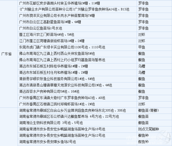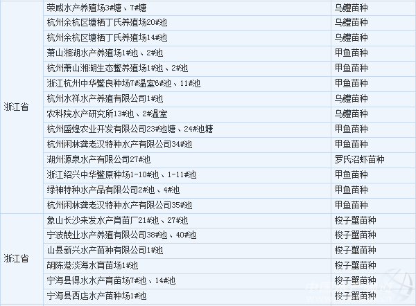 2012年水產苗種質量安全監督抽查樣品合格生產單位名單